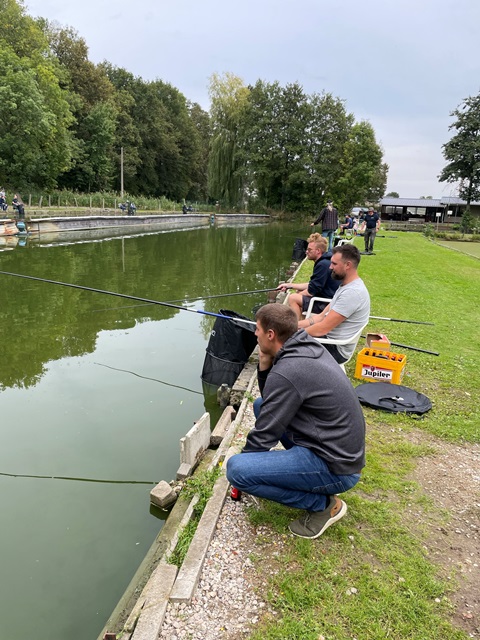 Onder het genot van een stuk Limburgse vlaai, werd er aandachtig samengewerkt om het hoogste gewicht aan vis uit het water te halen. Robbert en Mario kwamen als uiteindelijke winnaars uit de bus, Toon en Bert behaalden zilver en voor Bart en Jeroen was er brons. De namiddag werd afgesloten met pizza voor deelnemers en supporters.